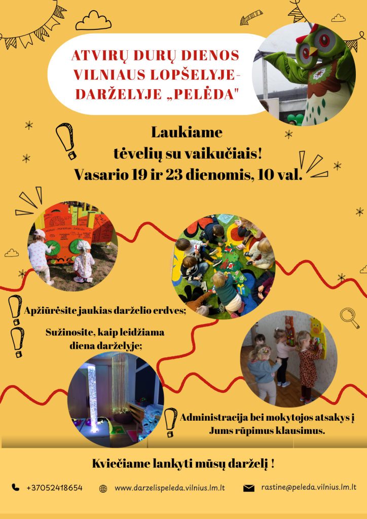 Kviečiame šeimas, auginančias mažylius ir dar neapsisprendusias dėl ugdymo įstaigos, vasario 19 ir 23 dienomis, 10 valandą į Atvirų durų dieną lopšelyje-darželyje „Pelėda“!